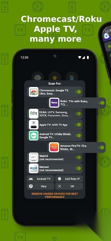 从手机本地文件以流式传输的方式传至电视,支持的设备包括Chromecast、Roku、Xbox、DLNA。