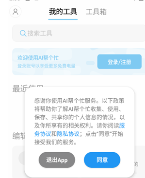 2. 打开并进入软件,点击同意隐私协议。