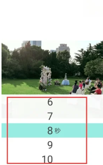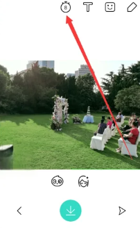 2、你可以挑选一张照片,或者当场拍摄一张照片,完成后点击红色箭头所指向的【时钟】图标。