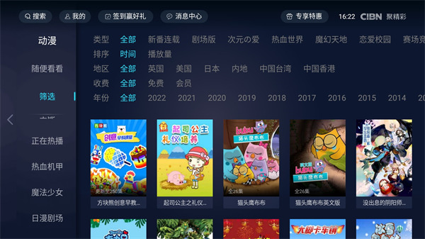 7、CIBN聚精彩桌面即内容,进入桌面即可快速选择内容与分类,你最感兴趣的内容触手可及。