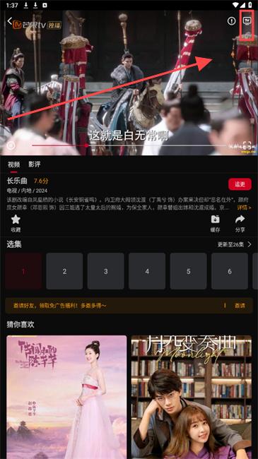 3、最后在播放界面找到并点击“tv”标志,就能实现投屏。