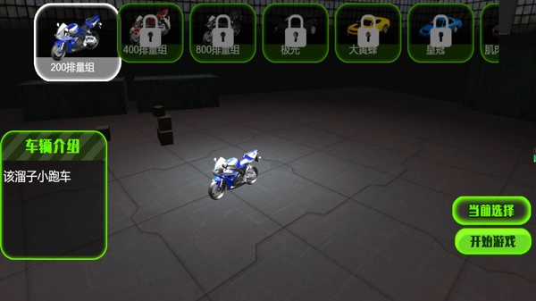 各种车辆选择,不同的摩托车提供,极限驾驶过程相当的刺激;