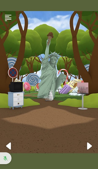 回到自由女神像的图片,把胡萝卜放进兔子手中的购物推车里,获取一根火柴。接着来到大象的图片处,将银行卡插入右侧的ATM机,输入密码1129,从而得到钱。用钱给大象换取它鼻子卷着的切披萨的工具(具体名称忘了)。点开披萨,再次点击,使用工具将其切开,依次点击观察下方出现的数字12784365。然后回到屋子里,按照顺序依次点击电视机的第一个格子,获得推拉工具。点开推拉工具与抓手进行组合,得到伸缩工具。前往糖果屋图,拿到长颈鹿嘴里的叉子,再到白马图,取走笼子上的火柴盒。将火柴盒与火柴组合后,回到屋子里,用其点燃蛋糕上的蜡烛。之后前往白马图,再回到屋子里,把叉子递给女巫(要点女巫的手),得到拉杆。记住香的长短顺序,打开左侧电视机最下方的格子,拿到钥匙。