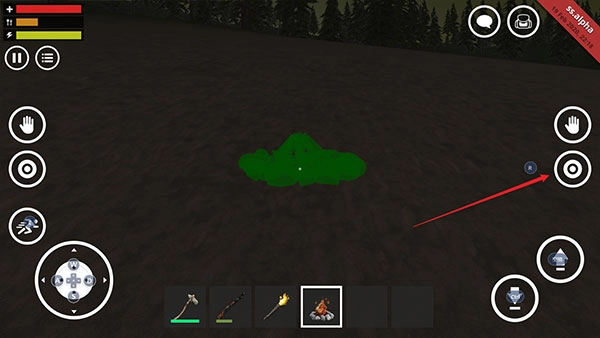 3、接着拿出武器,点击瞄准便能开火(通常是石斧,若想获得其他武器则需自行打造)。