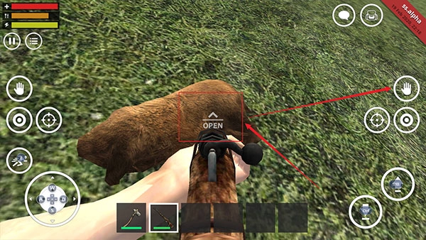4、当击倒野猪后,靠近野猪会出现OPEN,然后点击小手即可打开查看;