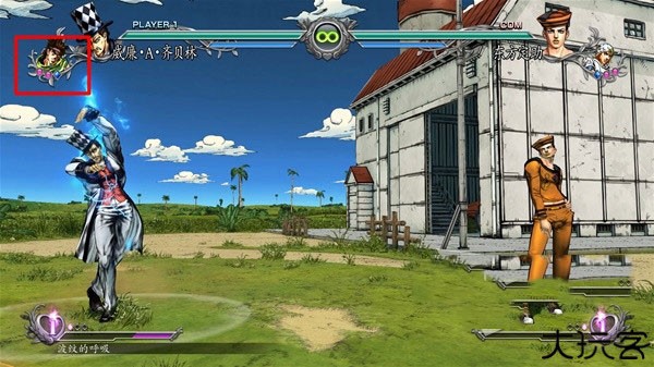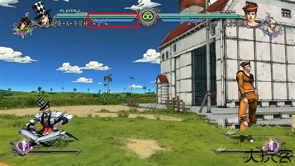 1、战斗界面中上方的绿条为角色的生命值,生命值率先掉到0的一方为败者。