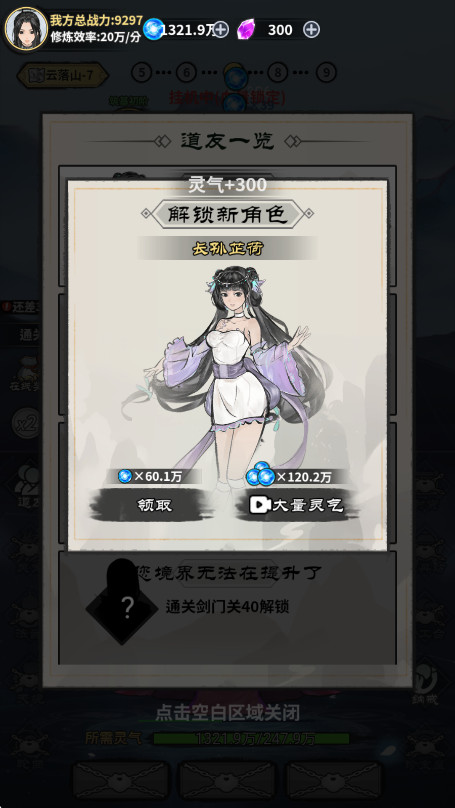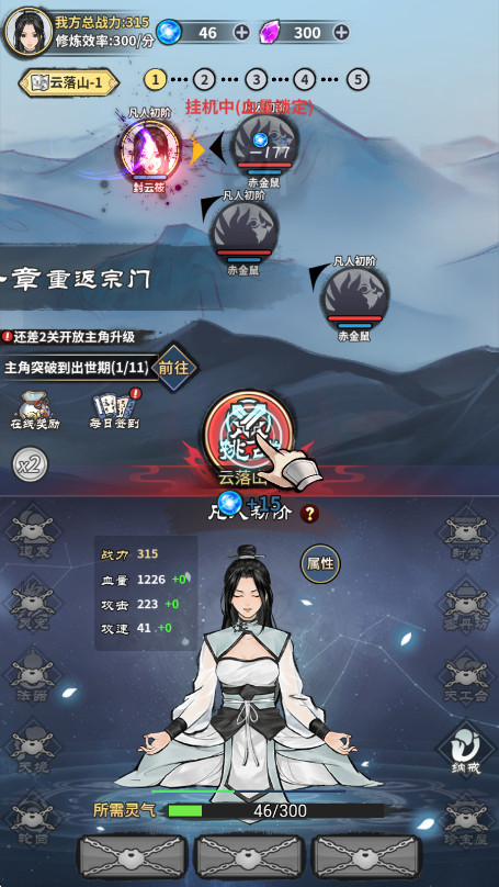 在此处能够挑选技能,实现快速清理怪物。当你挑战成功之后,既能够选择在原地挂机,还能够凭借境界的突破以及修为的提升,去挑战难度更高的关卡。