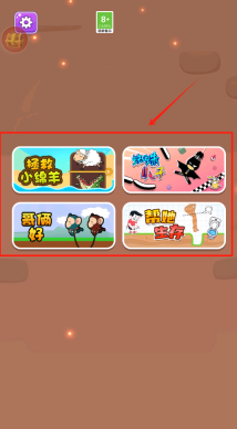 1. 轻点紫色齿轮进行游戏设置,查看适龄提示,挑选如救小羊、斗鳄鱼等自己喜爱的游戏。