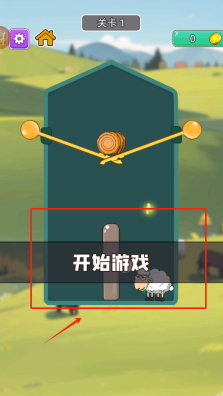 2. 来到关卡1的草地场景,点击“开始游戏”按钮,控制小羊跳过木杆和草垛。
