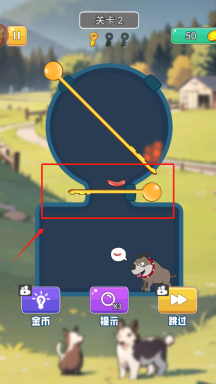 3、抵达关卡2,寻找钥匙打开门,收集金币,借助提示跳过难关,留意三只小狗来捣乱。