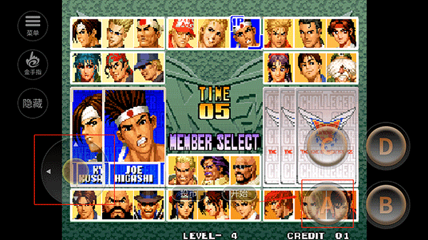 1、任何能够蓄气的拳皇角色,均能够通过长按ABC(轻拳、轻脚、重拳)来进行蓄力。