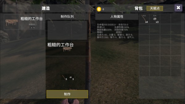 2. 打造武器等项目需借助工作台,待材料收集完备,便可着手制作工作台。