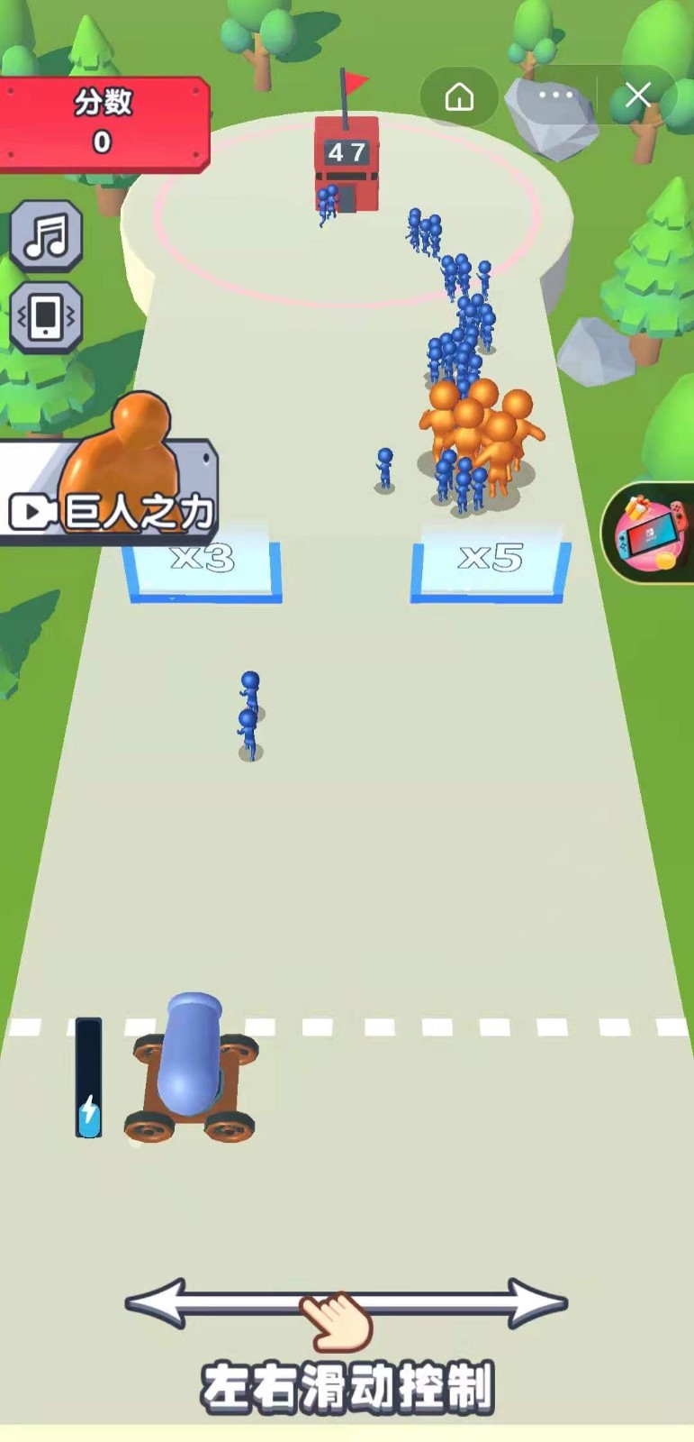 这是一款在全网都超火的休闲闯关游戏。在游戏里,玩家要通过滑动屏幕来操控炮台移动,接着持续召唤炮台中的小人,要是碰到难题,还能够召唤巨人助力,最终成功通关。