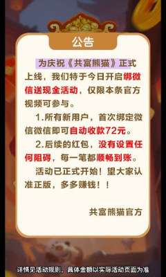 1.《共富熊猫》为玩家带来了别具一格的游戏体验,玩家置身游戏之中,不仅能够收获乐趣,还可获取实实在在的收益。