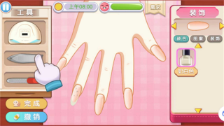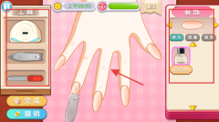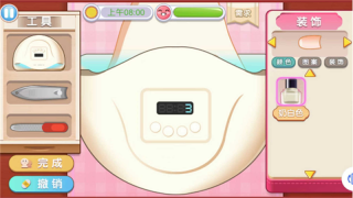 3、进入美甲操作界面后,界面左侧陈列着各式各样的美甲工具,右侧则设有装饰选项。你可依据自身需求,挑选恰当的工具与装饰,从而为角色开展美甲操作,顺利完成美甲任务。