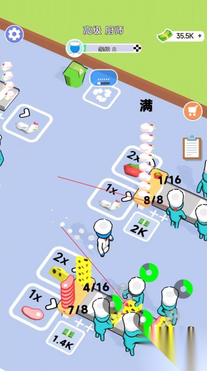 1. 核心经营机制:玩家通过点击屏幕操控角色于店铺内移动,和顾客、员工以及设施展开互动。在经营期间,玩家需留意食材库存、员工状态、顾客需求等要素。