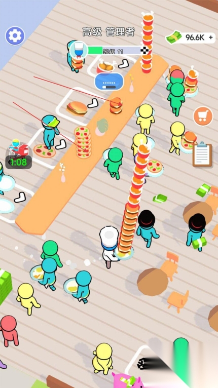 2、热情接待顾客,依据其需求供应餐食,对订单迅速做出响应,不让顾客久等。凭借优质的服务获取金币,这些金币可用于餐厅的升级。