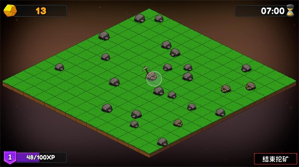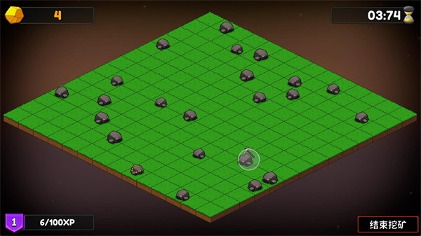 2、正式开始后点击矿石就可以进行挖矿,在悬浮球范围内的所有矿石都会被采集。
