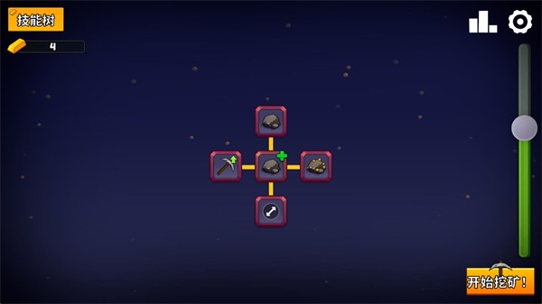 5、点击升级按钮可以消耗获得的金块来购买不同的升级,每一项升级都可以帮助你获得更多矿石。