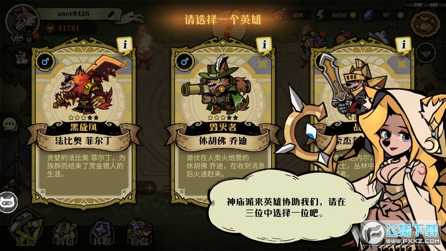 游戏开局有三个选项供选择,我选的是第三个“战狼”选项,这样前期能多三个跟班,推图的时候会轻松不少。也有人会选第一个选项,那个选项自带金币加成的天赋,能让经济发展得更强势些。