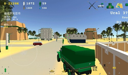 4、玩家可借助任意载具移动,既能修建国家大型工程,也能制造武器、歼灭敌人。