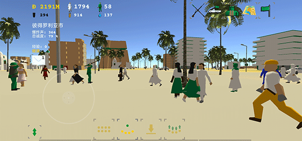 其次,游戏中还能运用坦克、火炮、直升机等各类武器,也可以建造形形色色的建筑物。这里模拟了沙漠城市的战斗玩法,有不少别具一格的建筑和酷炫的交通工具可供玩家随意使用,玩家可以和小伙伴们一同消灭所有叛军!