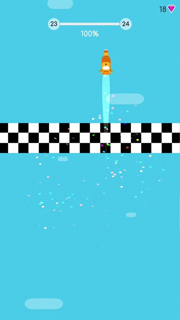 火箭瓶子游戏是一款充满趣味与魔性的休闲挑战类游戏。在游戏里,玩家将操控一个瓶子完成各类挑战,需灵活操作以躲避障碍物并收集金币。游戏的操作方式很简单:手指按住屏幕时,瓶子便会向前飞行;松开手指,瓶子则会坠落。飞行途中会出现诸多障碍物,玩家要避开这些障碍才能顺利抵达目的地。而且每个关卡都有特定的飞行距离要求,只有达到相应距离,才能解锁并进入下一关。