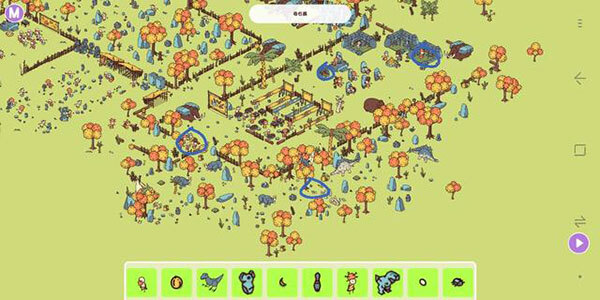 4、石镜的位置是在左上方那片被四个菠萝围着三棵树的区域,再往下一点的水晶旁边。
