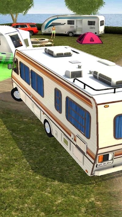 1、真实沉浸的画风表现:游戏采用偏向写实的美术风格,支持多视角自由切换,再结合晴朗明快的场景设计,使露营与驾驶的体验更具现实感,有效提升玩家的代入感受。