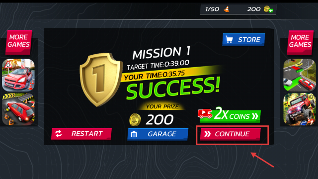 4、任务完成后,点击【CONTINUE】按钮即可解锁新关卡,继续驾驶露营车在岛屿上展开探索。