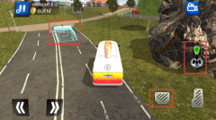 1、游戏开始后,我们需要驾驶露营车,利用左下角的【方向键】操控转向,借助右脚边的【油门键】进行加速,然后跟随绿色指引的方向前进就可以啦。