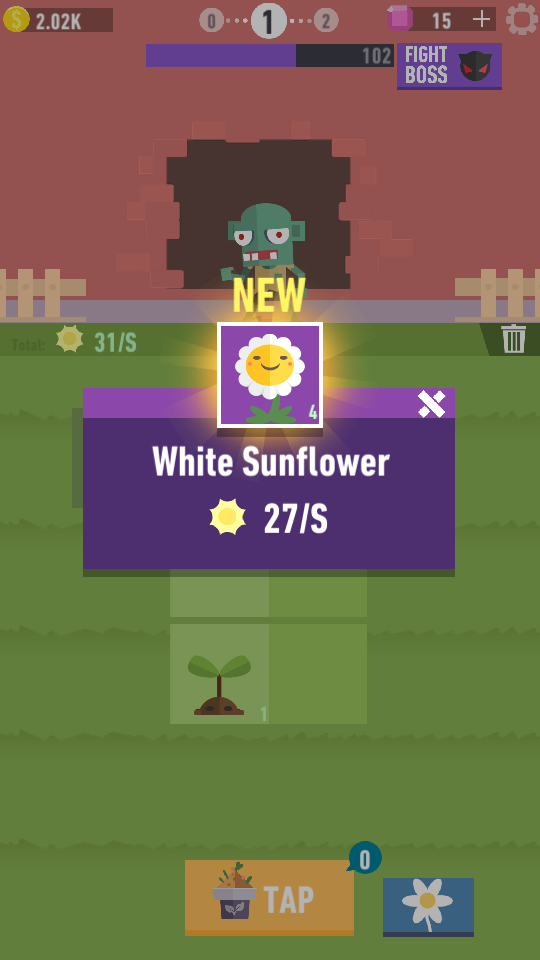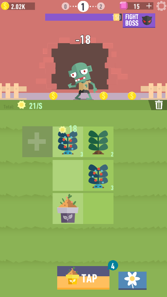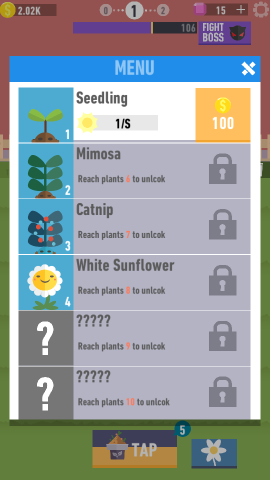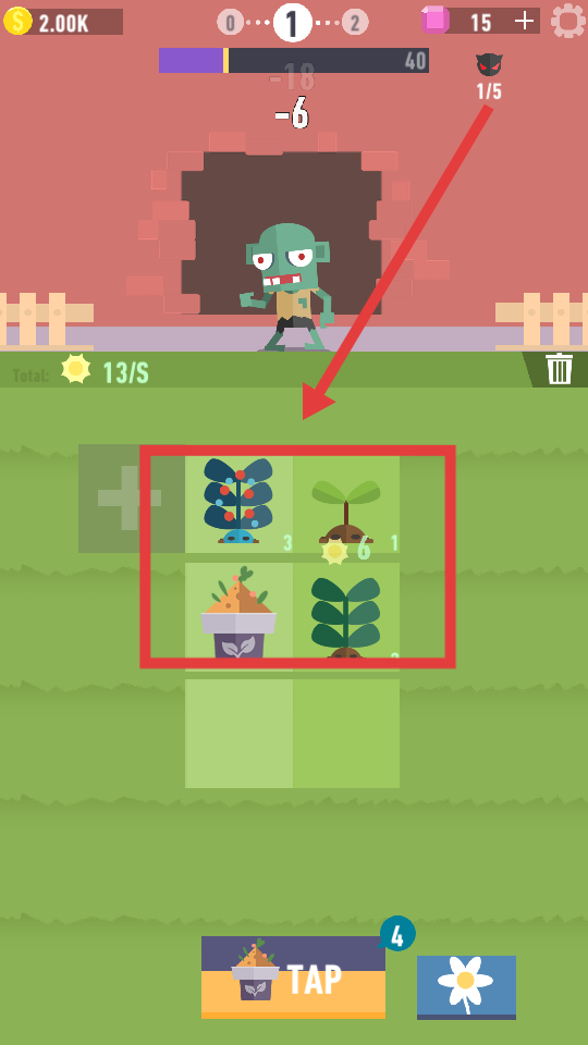 1、第一步,点击游戏界面下方的TAP按钮来获取新植物。这些新植物会随机出现在界面内的格子中,且每次点击都有可能得到不同类型的植物。