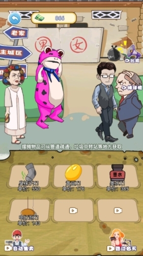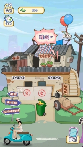 《疯狂逆袭》是一款十分有趣的休闲经营类游戏,操作简单易上手,玩法内容丰富多样。在游戏中,玩家将扮演一个空有颜值却身无分文的穷小子,因为贫穷,妻子离他而去。为了让妻子回心转意,也为了能更好地抚养孩子,你必须拼命赚钱。游戏里,你需要通过捡垃圾来积累财富——捡到的不仅有钞票,还有各种可回收的垃圾物品,把这些物品摆在自己的小摊上售卖,就能赚取不少收入!