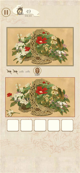 在《国画大师》这款游戏里,随着关卡不断推进,画作找茬的难度会逐步提高,这十分考验玩家的耐心与洞察力,你需要找出不同画作之间的差异并将其指出来。