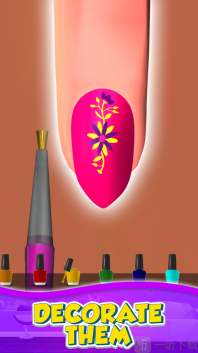 游戏的任务是为顾客打造出精致漂亮的美甲,而且游戏画风十分精美,色彩搭配鲜艳明快,能让玩家心情愉悦。在游戏里,你可以挑选各种各样的素材,把顾客的指甲装饰得更美观,并且游戏操作的自由度相当高。