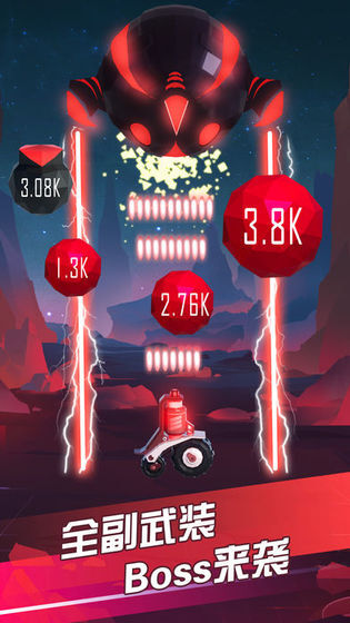 2、对装备进行升级,通过提升等级来挑战Boss;在屏幕上滑动霓虹战车进行射击,就能击溃敌人发射的陨石炮弹;