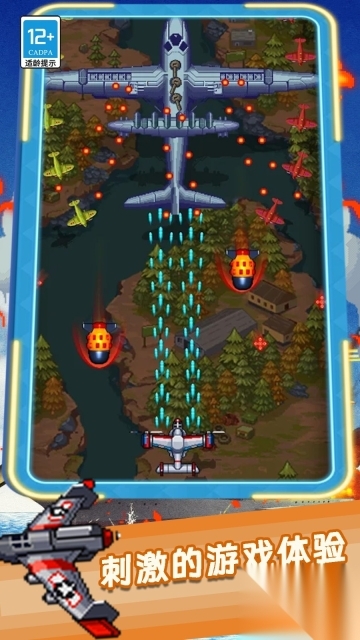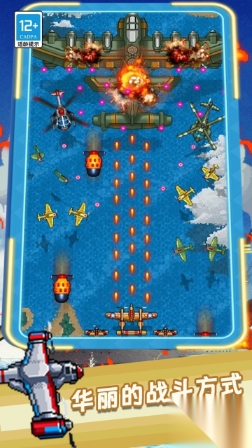 1、尽情感受多样的射击玩法,每架战机都具备独特的射击模式,玩家需迅速锁定并攻击敌人的弱点。