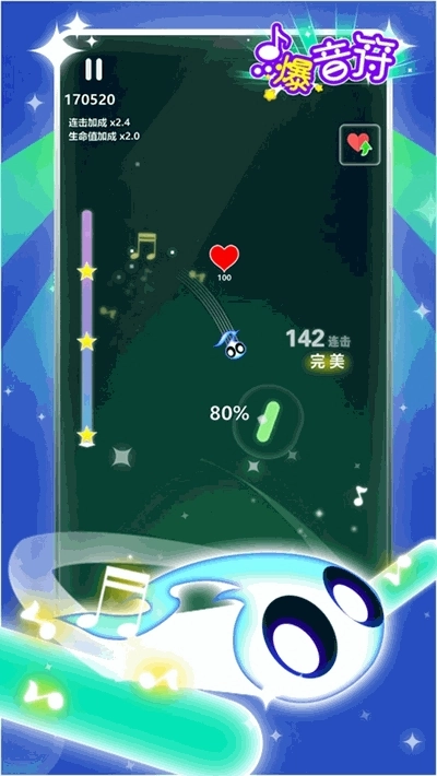 《点爆音符》选用当下最丝滑的炫光极简设计,是每位玩家都青睐的画面风格!搭配上动感满格的特效,让每一次点爆音符的体验都燃、炸、嗨,每一个关卡都变成一段专属的酷炫音乐之旅!快来挑战一首歌曲,保证能让你沉浸其中!