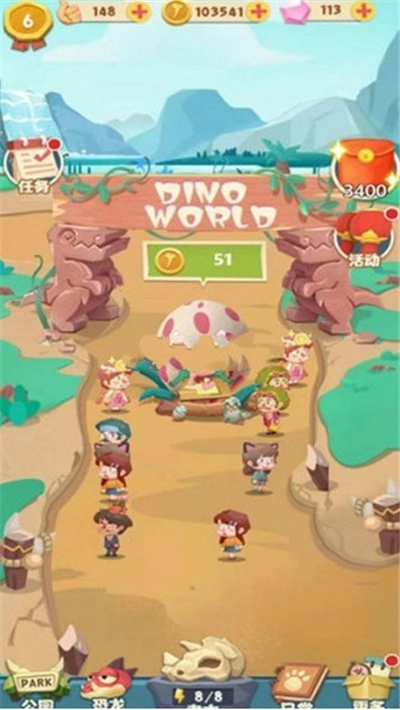 1、游戏里的合成机制十分简单,只需把两只相同的恐龙放在一块儿,就能合成出更高等级的恐龙。