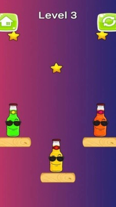 击倒苏打瓶是一款休闲有趣的闯关游戏,它的画面简洁明了,玩法却十分烧脑且富有乐趣。游戏里有各种颜色的苏打瓶,玩家需要击打这些瓶子来获取星星。