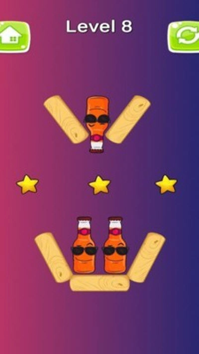 击倒苏打瓶是一款休闲益智类游戏,玩家通过挤出瓶盖的方式获取星星,只有集齐所有星星,才能以满分成绩通过关卡。