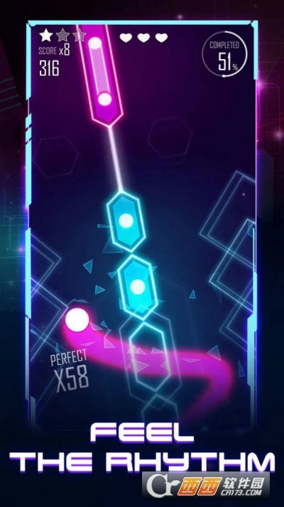 《魔点跳舞》是一款音乐类休闲游戏,玩家需跟着音乐的节奏,在游戏里协助小球完成关卡挑战。过程中小球不仅要持续穿越各种障碍物,还得确保不会掉落,顺利完成闯关任务后,还能解锁小球的炫酷皮肤。这款游戏操作简便,感兴趣的小伙伴们快来体验吧!