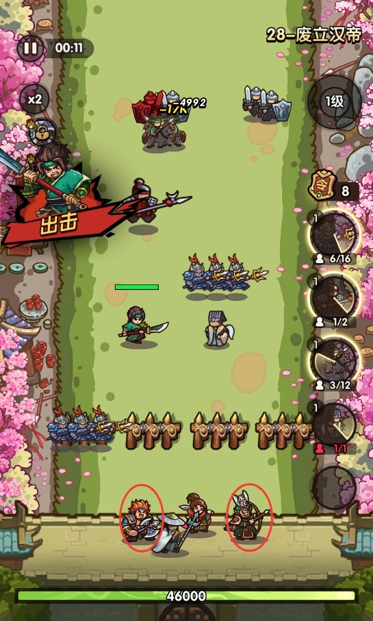 当主公上阵近卫后,近卫会在战斗中持续支援,释放普通攻击和技能。每个近卫的技能效果和攻击方式都不同,所以需要主公们思考搭配出最适合过关的近卫组合。