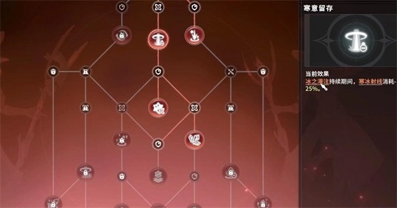 天赋配置选择冰晶共鸣、浪潮精通、冰棱之约、琉璃浩瀚、速冻爆破、寒风凝聚、冰光共鸣、寒冰灵域、涓流连绵、冰息宁静、冰箭狂潮、冰晶扩充、冰冷脉冲。射线流输出能力强,但是能量消耗大,天赋加点可以多选择些回能的效果。主要依靠寒冰射线为主要输出,天赋上可以多选择一些增幅类的效果,增加输出能力。