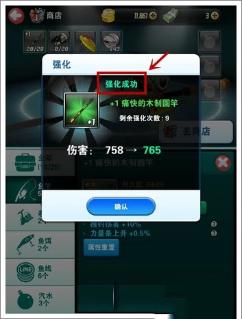 在个人装备界面打开钓竿,随即就能看到强化按钮,点击该按钮即可进入强化界面(如图所示)。