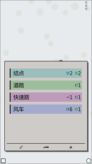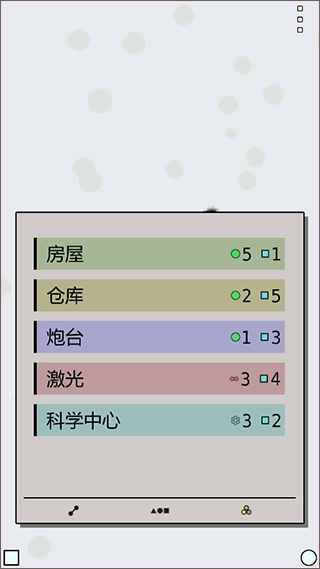 运用圆圈、三角形、正方形这类基础图形来指代各类建筑与资源,让界面呈现出简洁且直观的效果。