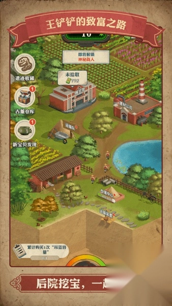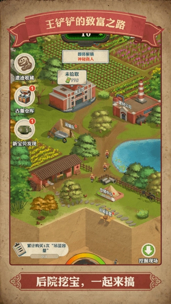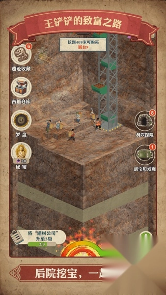 王铲铲的致富之路最新版是一款风格搞怪的休闲模拟经营游戏,玩家将化身为主角王铲铲,借助挖掘、探索与经营等途径获取更多宝藏,还能招募更多员工、升级设备以提高挖掘效率,持续拓展经营规模。