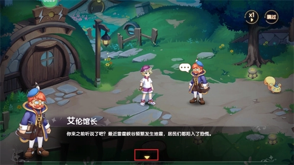 3、之后玩家就能和场景里的人物对话了,点击对话下方的黄色小按钮就能推进对话进程。