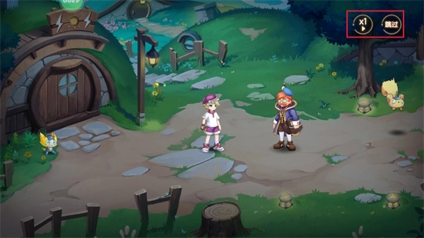 4、你也可以点击屏幕右上角的加速按钮来加快对话进度,或者点击【跳过】按钮直接跳过当前对话;