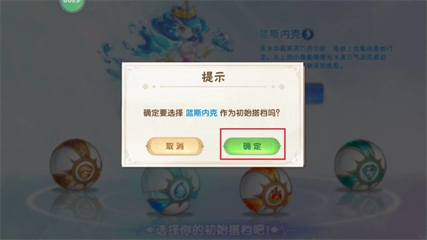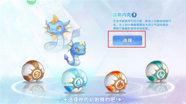 6、点击对应的小球后,玩家需点击红色框内的【选择】按钮,完成宠物的选定操作。